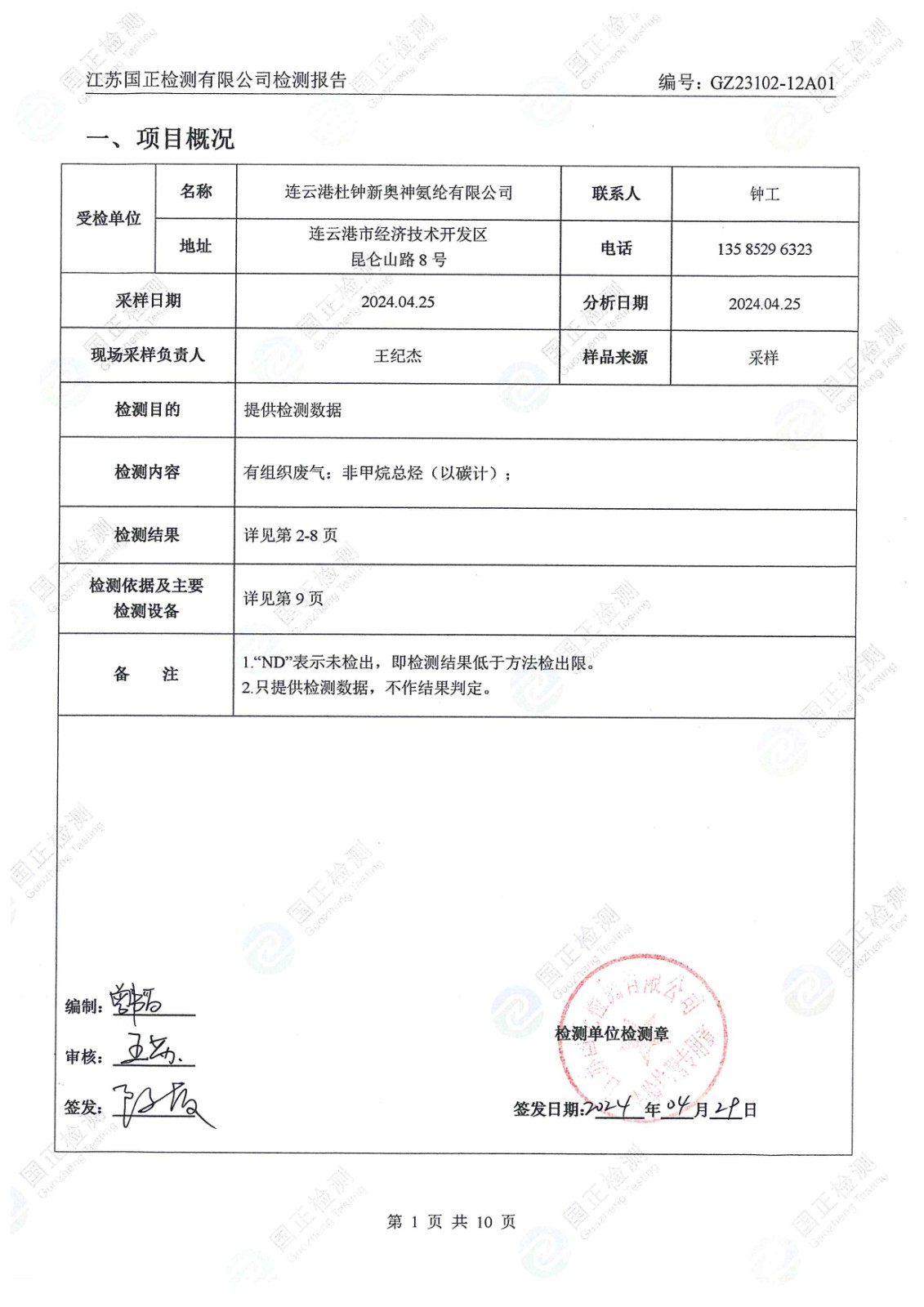 杜鐘氨綸2024年4月檢測(cè)報(bào)告